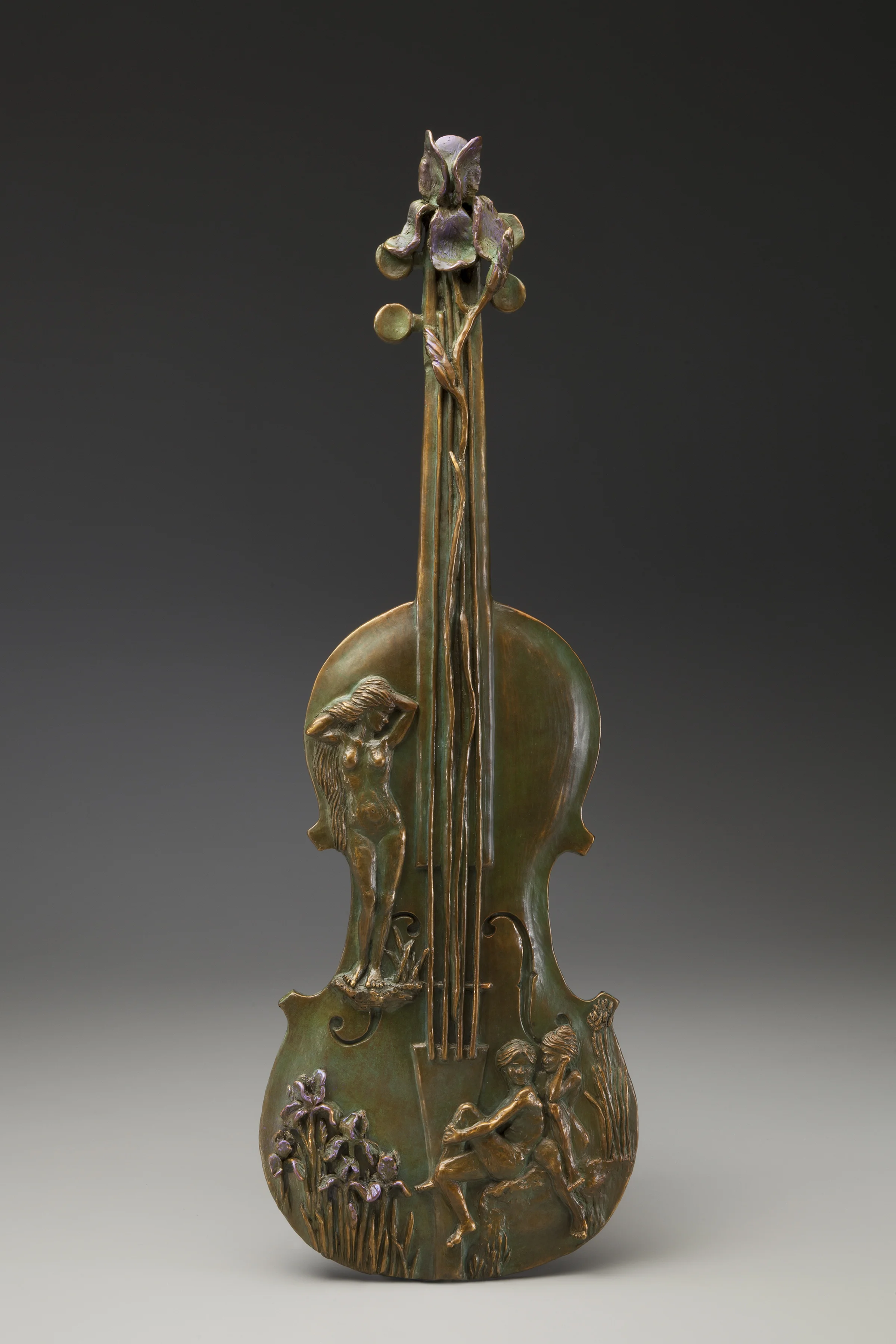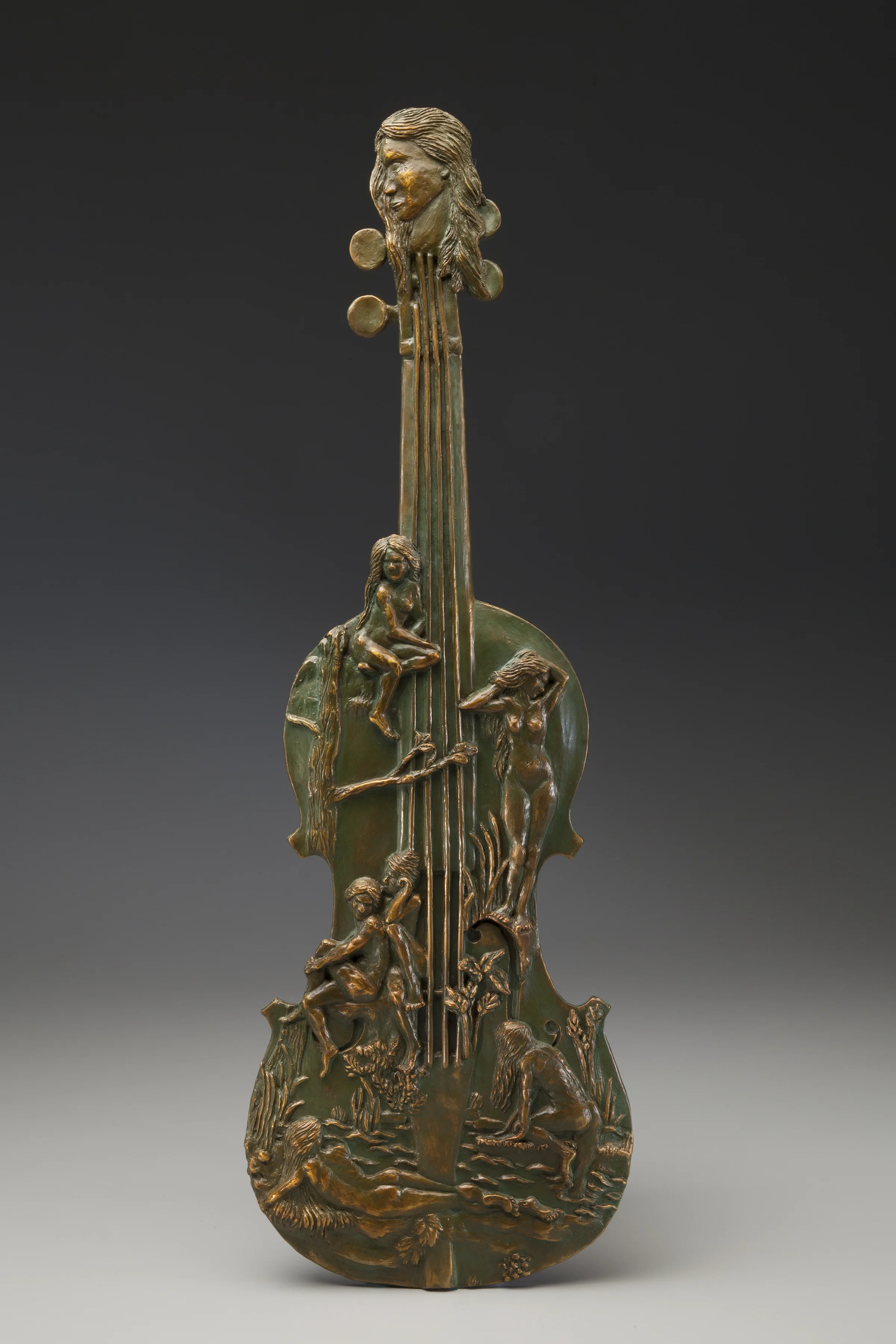 Inspired by the painting "The Nymphaeum" c.1878 by William-Adolphe Bouguereau, this piece was created for entry into an exhibition hosted at the Haggin Museum in Stockton, CA by the Society of Woman Artists. The sculpture needed to be something completely unique, but inspired by some aspect of one of 13 paintings: "the composition, color, animals, a gesture… or give these old masterpieces a contemporary make-over."